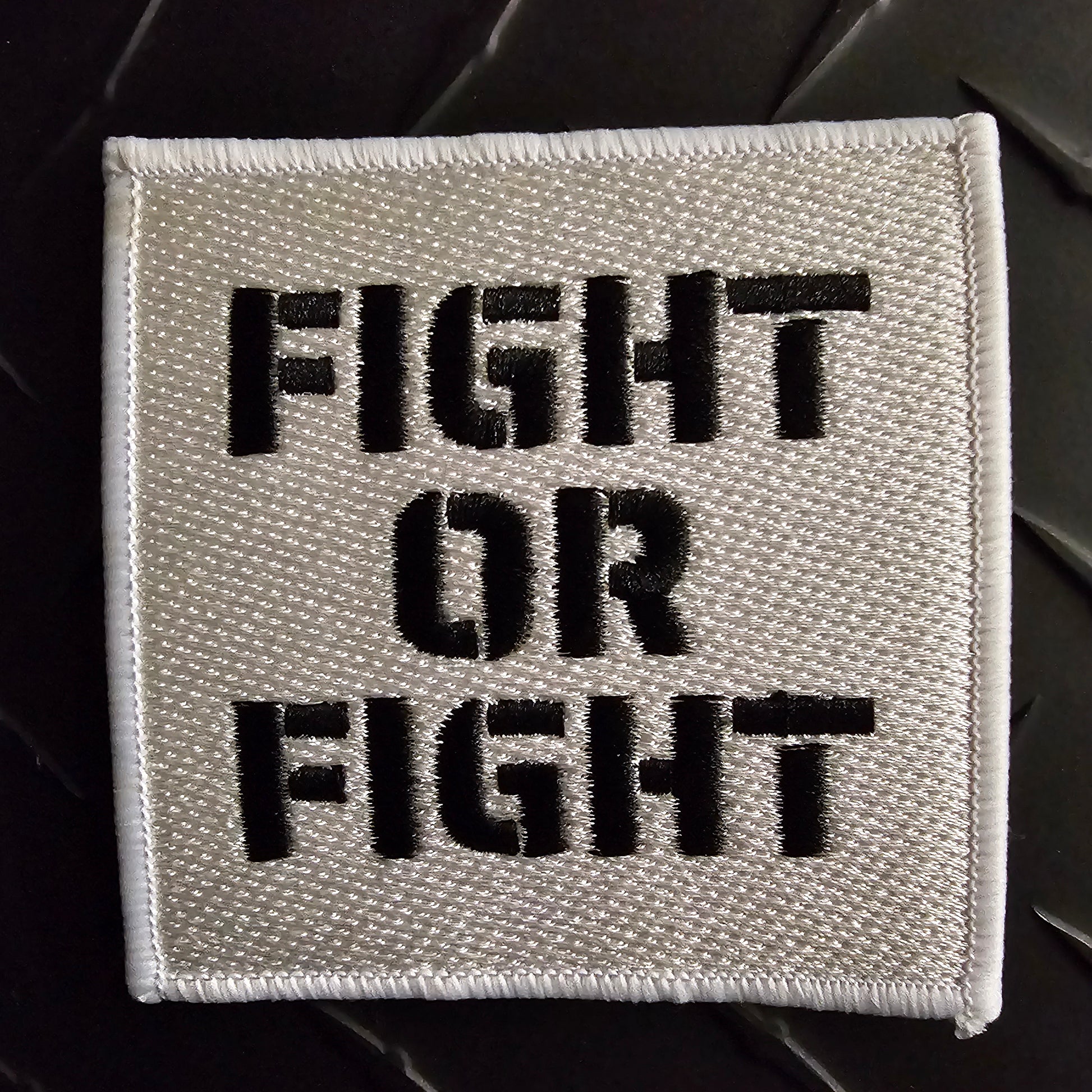 3" x 3" FIGHT OR FIGHT Iron-on Patch. Comes in either black on white or white on black.